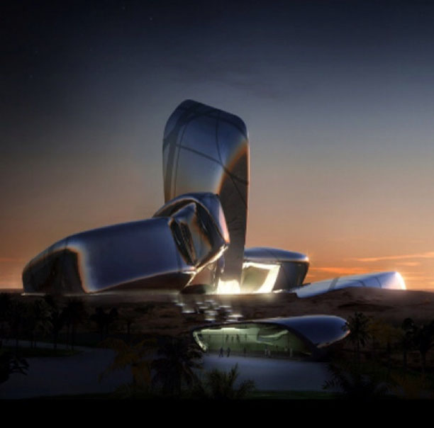 El Rey Abdulaziz Centro para la Cultura Mundial es una iniciativa de la compañía petrolera Saudi Aramco Oil en Dhahran, Arabia Saudí, muy cerca del llamado prosperity well, un monumento nacional que conmemora el lugar donde se descubrió petróleo por primera vez en el Estado árabe. Diseñado por la firma noruega Snøhetta, el mismo estudio que firma la ampliación del MoMA San Francisco, formalmente la arquitectura se inspira en la geología y las formaciones rocosas de Arabia Saudita que conservan la energía del petróleo.
