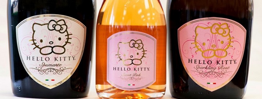 Sanrio, la empresa japonesa creadora del personaje Hello Kitty (1974), en alianza con la bodega italiana Torti de Pavia, proyectó una gama de vinos espumosos, cuyo rostro será la afamada gatita blanca.