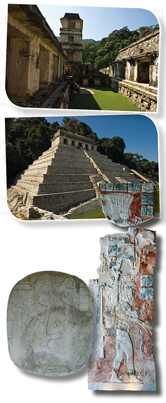 Dentro de esta población –que recibió su nombre hasta 1740 cuando el sacerdote Antonio Solís descubrió la zona arqueológica–, existen numerosas losas de piedra con inscripciones, esculturas intrincadas con bajorrelieve, máscaras incrustadas y otros adornos excepcionales que otorgan a Palenque, un aire de encanto y santidad.